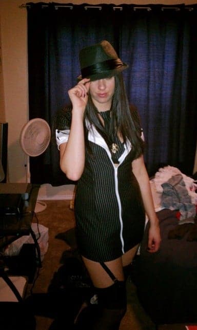 Belle femme avec de jolies formes, lingerie très sexy et très pratique surtout !