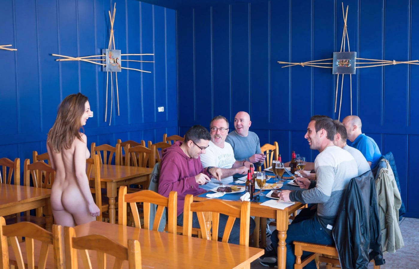 Face à un mur blanc, une brune élancée au corps de mannequin défait lentement sa robe immaculée, ses yeux bleus lançant...