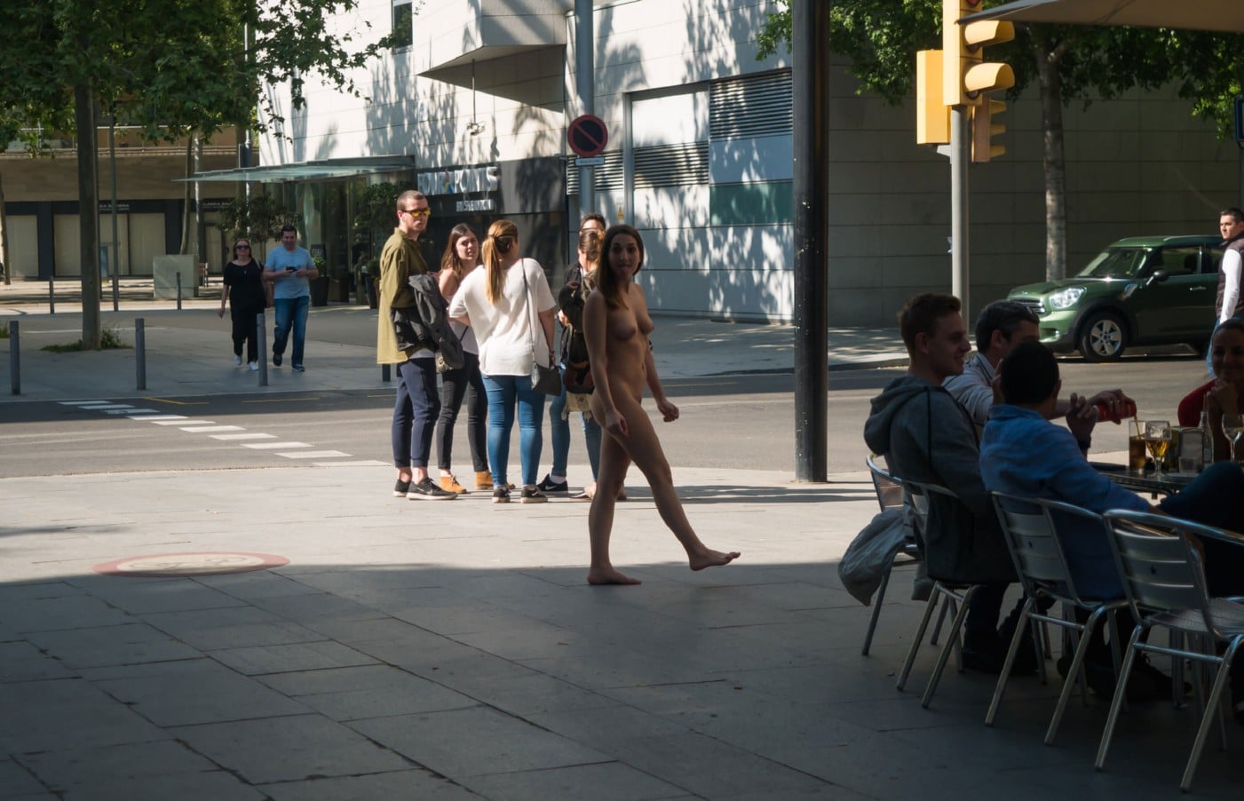 Coquine poilue de la chatte fait des exhibitions dans la rue et les bars Partie 2
