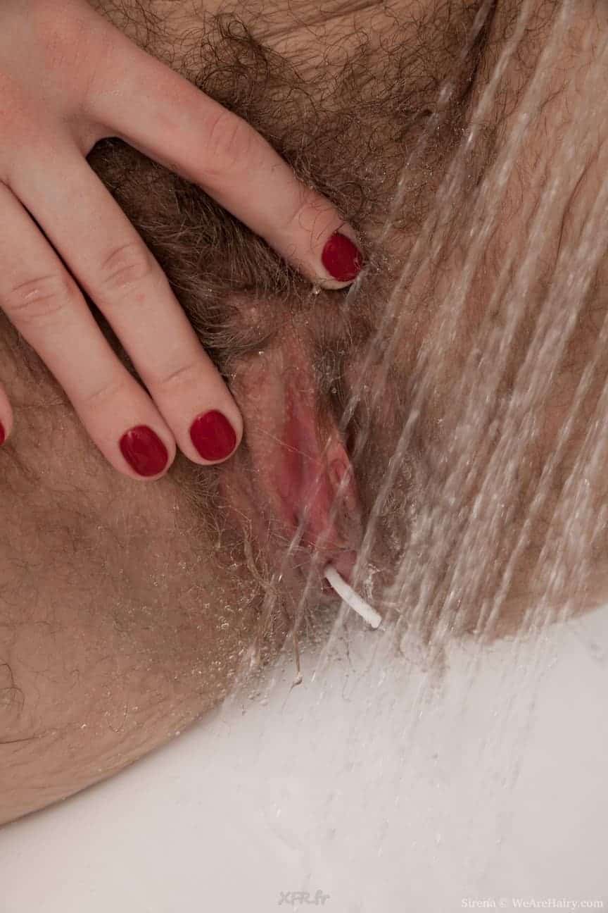 Sirena prend tout son temps pour se laver et brosser ses poils de partout. IL faut dire qu’elle en a un max la coquine ! ca doit sentir bon tout ca en fin de journée ! En plus, elle joue avec une boule de geisha qu’elle enfonce et ressort de son vagin velu. Qui veut aller sucer sa boule? lol.