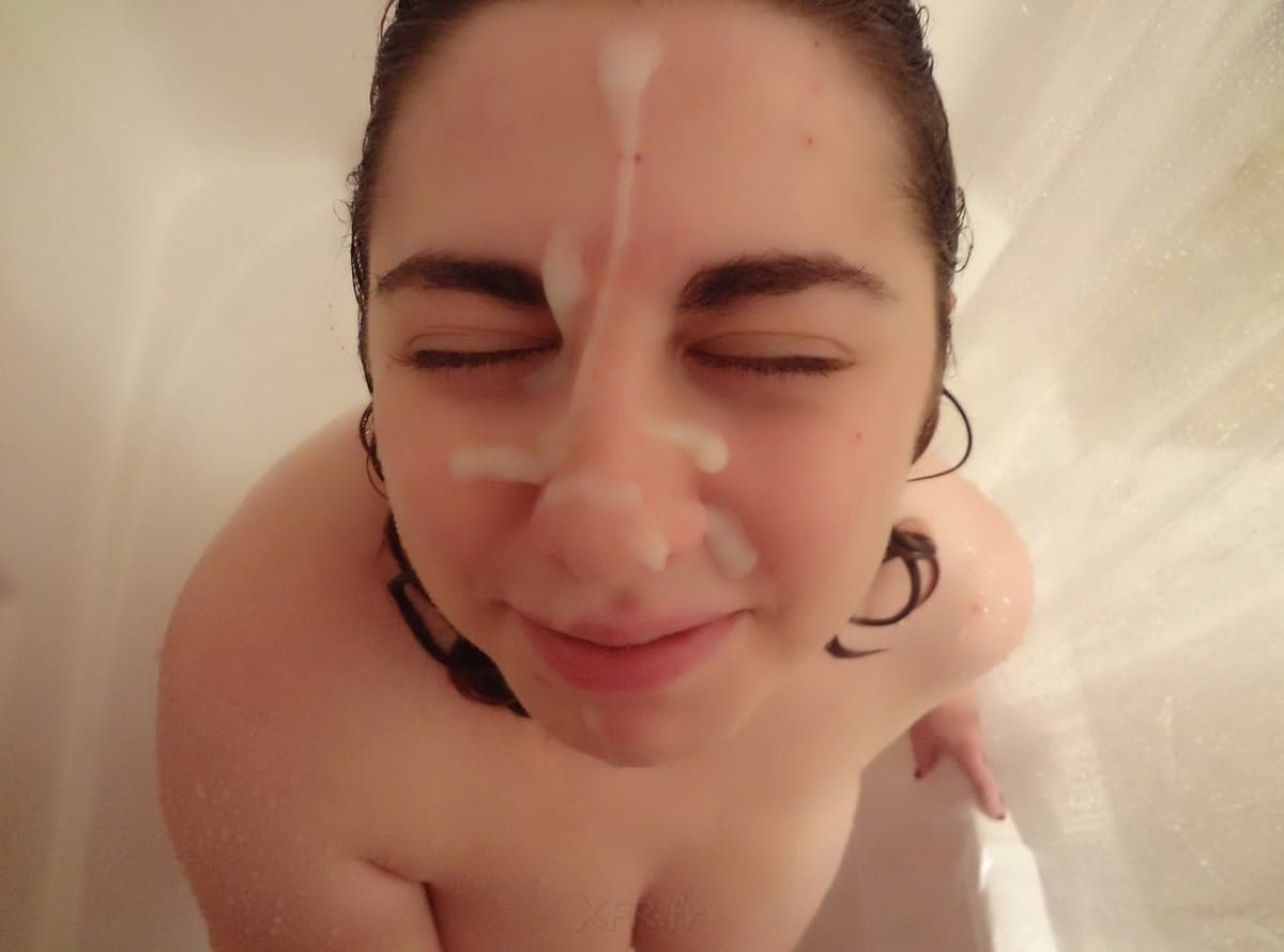 Femme charnue moche se fait arroser de foutre dans la SDB