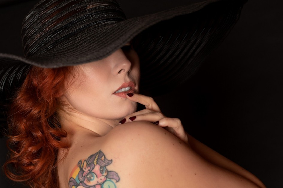 Femme rousse se montre nue dans la sensualité et l’érotisme