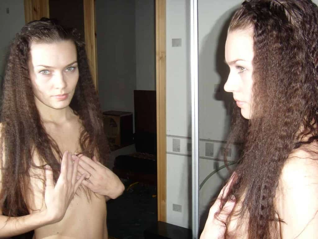 Jeux de miroirs coquin pour la libertine atomique de 25 ans