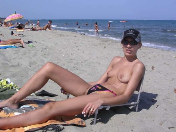 Jolie coquine s’exhibe sur la plage les seins nus