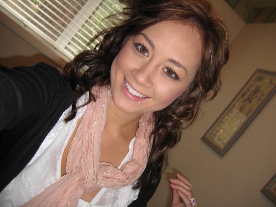 Devant son mur blanc, la jeune brune aux yeux bleus, élancée comme un mannequin, joue avec des photos avant/après...