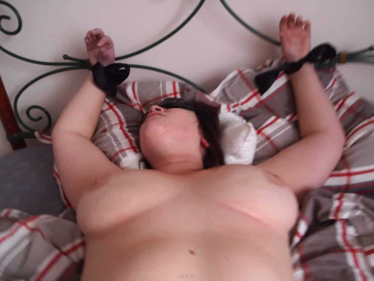 La jeune coquine charnue découverte hier revient avec de jolies photos coquines ! Comme promis elle est attachée sur le lit toute nue et se fait fouiller le vagin avec un vibromasseur. Vous avez aimé mon nouveau verbe dans le titre ? lol Je sais je suis fracassée comme femme ! lol Allez je vous mets un bonus de foutre !