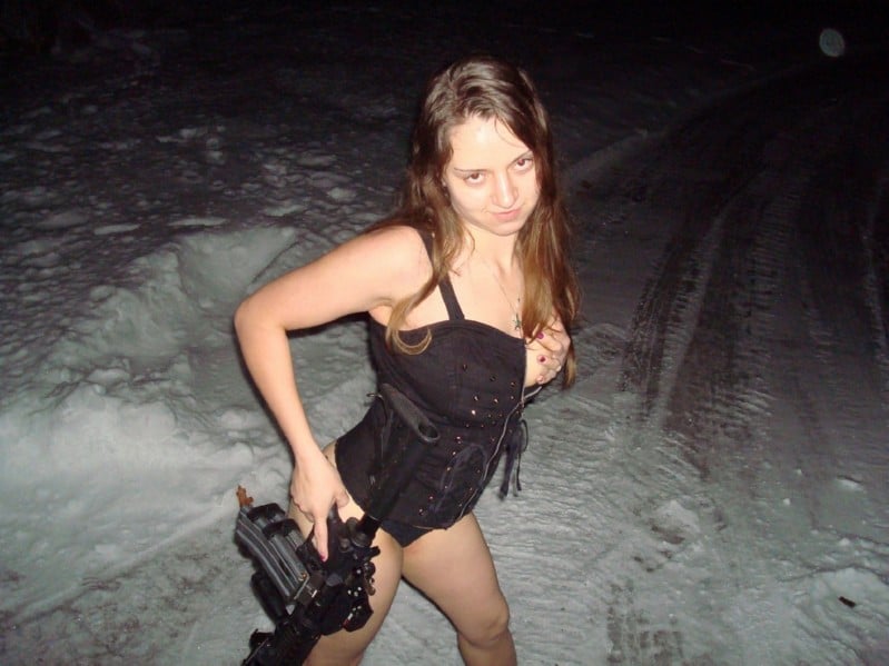 Et bonjour les amours ! Voici la deuxième série de photos de notre coquine pulpeuse. Elle va aller dehors pour jouer à la guerre. Je précise que c’est une arme factice bien entendu ! L’avoir dans cette petite tenue rendrait n’importe quel soldat fou d’excitation. De retour à la maison, prendre une douche pour nous montrer sa jolie poitrine laiteuse et naturelle. Demain le final.