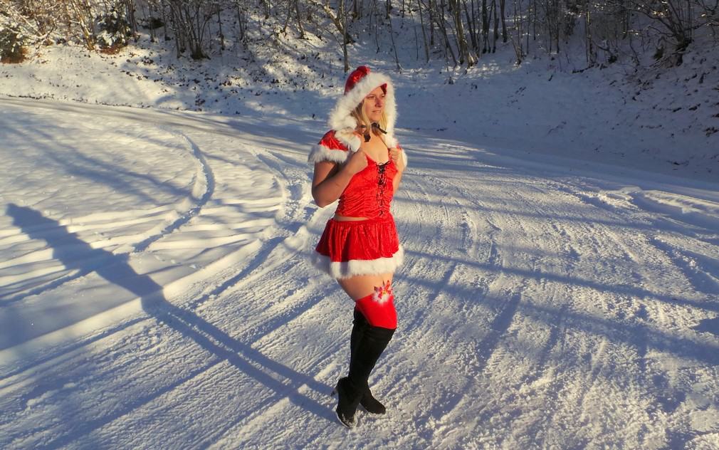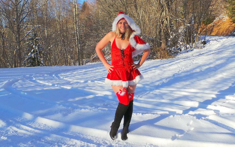 Je sais que ce n’est pas trop la saison, mais je suis tombée sur ses photos de la mère Noël et je voulais absolument les partager avec vous cette jolie blonde est vraiment magnifique ! Qui n’aimerait pas au détour d’une balade en forêt tomber sur une pareille beauté ! On aura d’autres photos demain soir c’est promis.