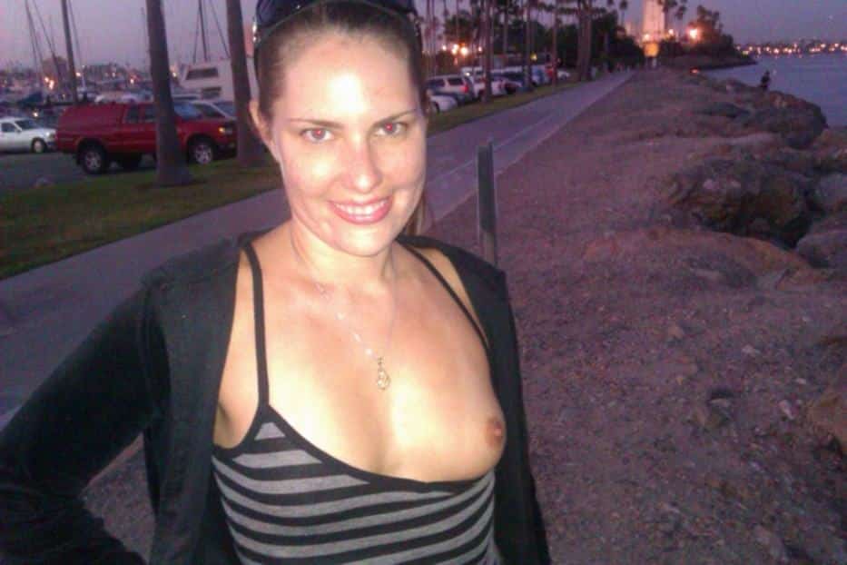 Les fêtes s’animent ! Une brune aux seins parfaits, gros et naturels, pose pour des photos de charme sous le soleil...