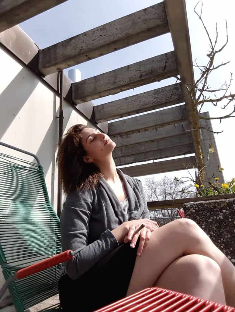 Petit tour sous la douche et sur la terrasse avec une brune hyper sexy