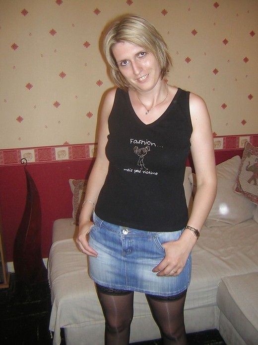 La femme mature blonde, cheveux courts, corpulence classique, pose sur son lit, ses lingeries changeantes révélant sa chatte humide. Une culotte ouverte expose son intimité luisante, porte-jarretelles et bas dessinant ses courbes. Une jupe glisse, ses seins fermes surgissant sous un tissu léger, chaque tenue amplifiant une envie crue.