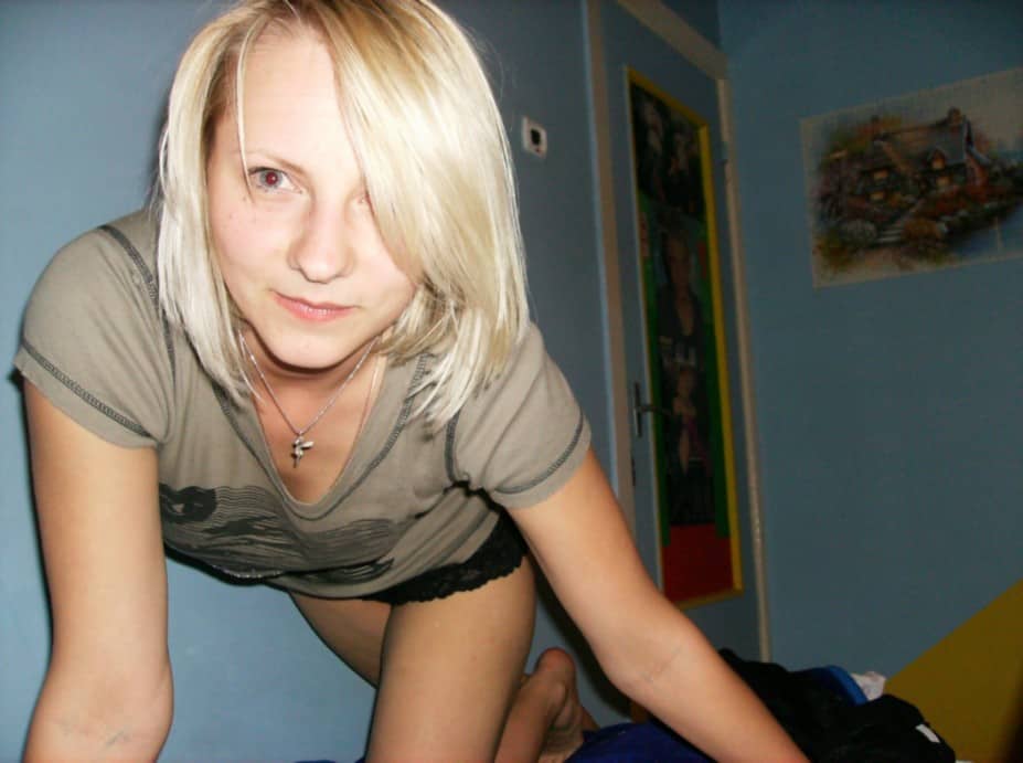 Ce matin, on publie les photos d’une revenante. Pour les plus assidus d’entre vous, vous vous souviendrez certainement de cette jolie blonde aux cheveux courts très gourmande de sexe. Cette première série matinale sera dédiée à l’effeuillage. Demain matin, on passera aux choses sérieuses.